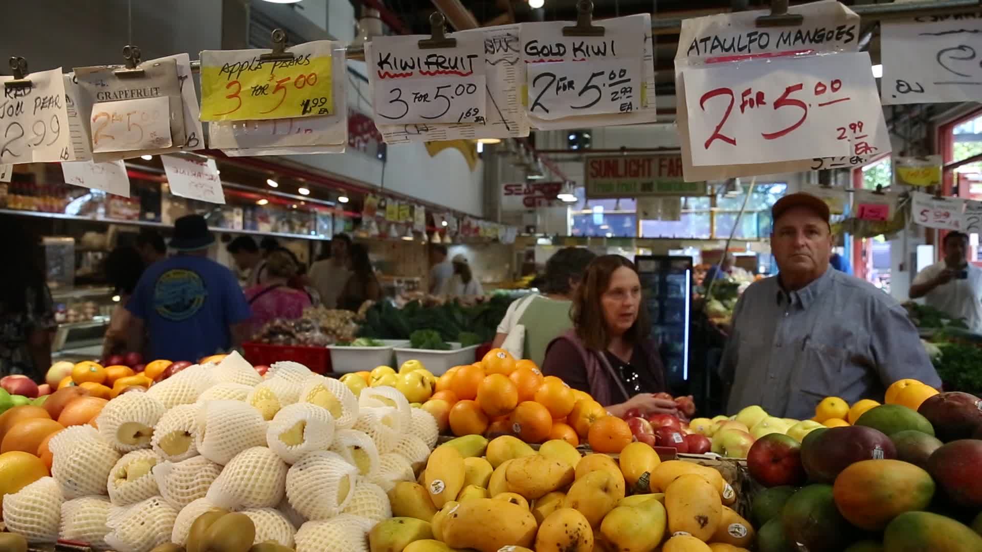 Granville Island Public Market in Vancouver, British Columbia, Canada, on Saturday, Aug. 2, 2025. President Donald Trump said the US will put a 35% tariff on some imports from Canada, escalating the tensions between two countries that have impaired one of the world’s largest trading relationships. Isabella Falsetti/Bloomberg